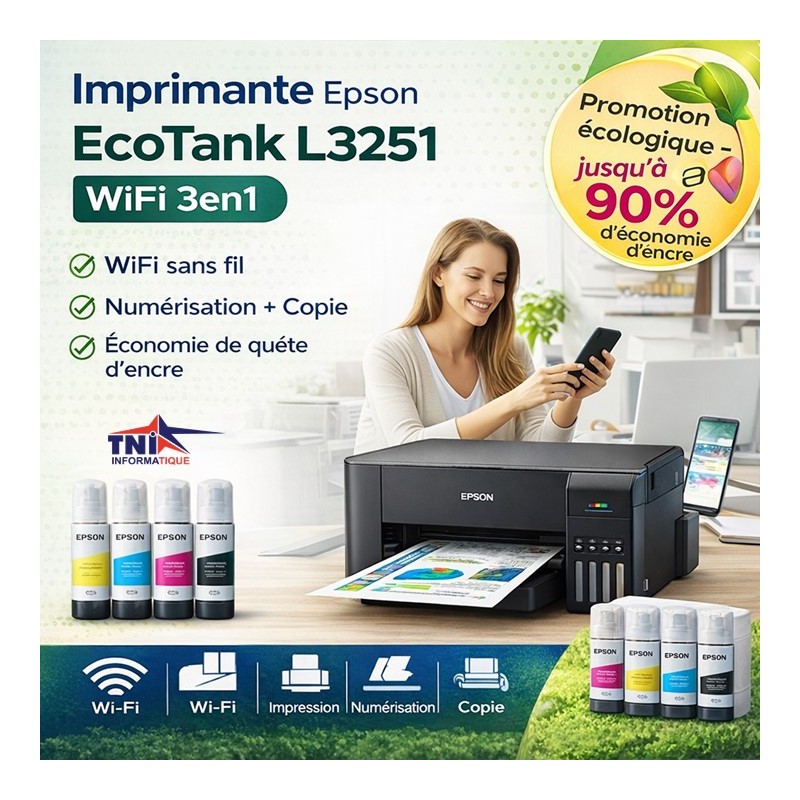 Imprimante Epson EcoTank... Prix de base 1 999,00 TND -100,00 TND Prix 1 899,00 TND Prix réduit Nouveau Aperçu rapide
