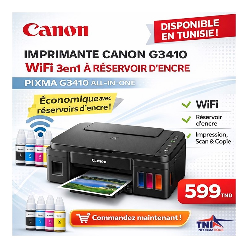 Imprimante à Réservoir Intégré CANON Pixma G3410