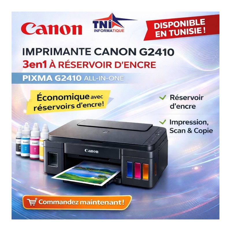 Imprimante Canon G3410 WiFi... Prix de base 699,00 TND -100,00 TND Prix 599,00 TND Prix réduit Aperçu rapide